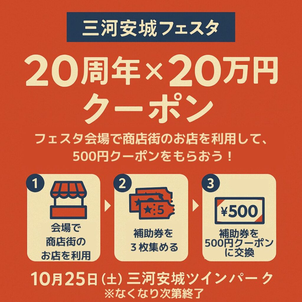 三河安城フェスタ 20周年記念「20万円クーポン」企画